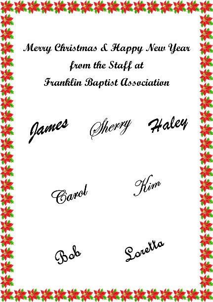 Everyone at Franklin Baptist Association prays that you will find the greatest Gift for all eternity.